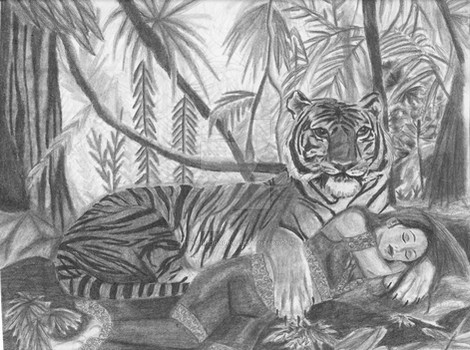 There are great details in this work, and I especially love the ocelot. You've captured the dark atmosphere in this colored piece excellently.