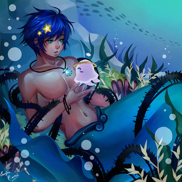 I love this! Fukase looks super cute as a merman! Specially because he looks like an abyssal fish, And I find it amazing!