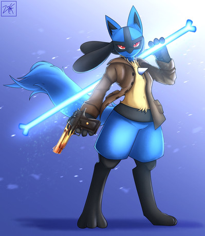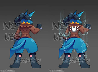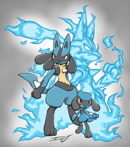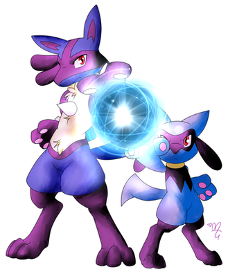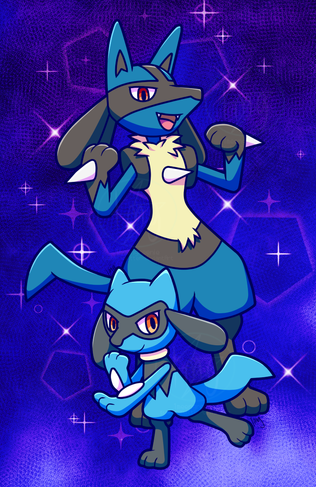 Got a cute of commission of Both versions of Devv, Riolu and Lucario standing side by sideArtist: twitter.com/evelinlovespkmn?s=…