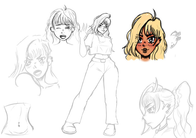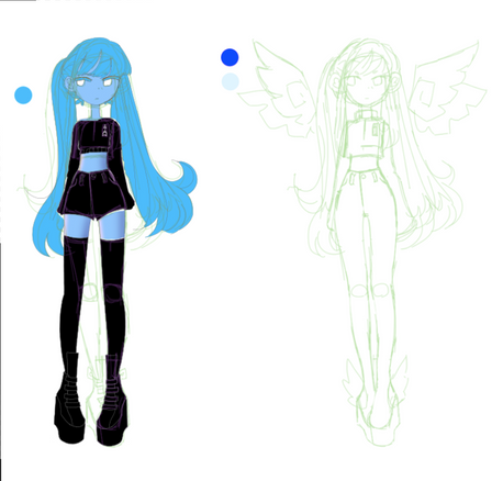 #oc #ref #cyberpunk_oc #characterdesign #neoncolors #originalcharacter #referencesheet #robotgirl #sketch #cyberpunkgirl #cyberpunkcharacter