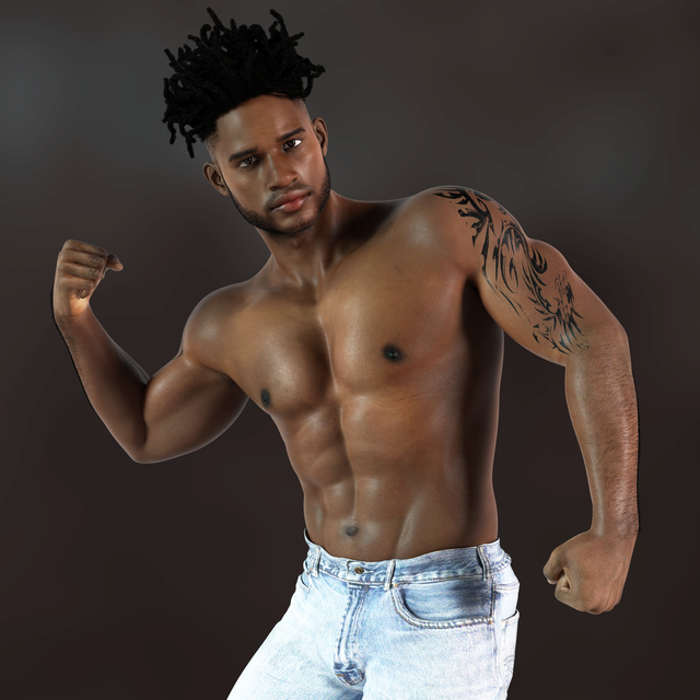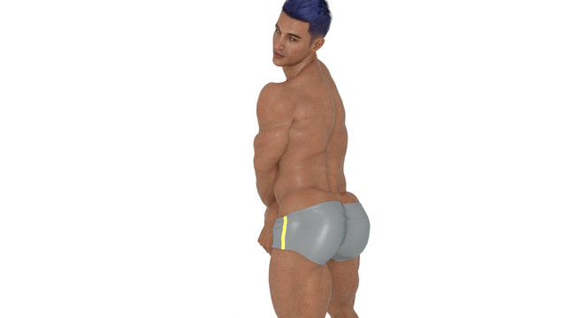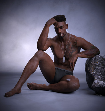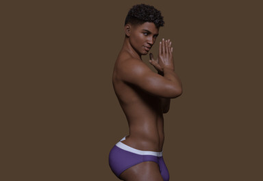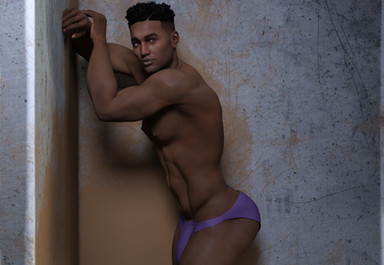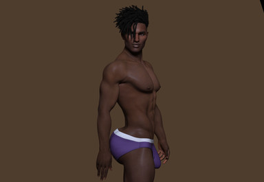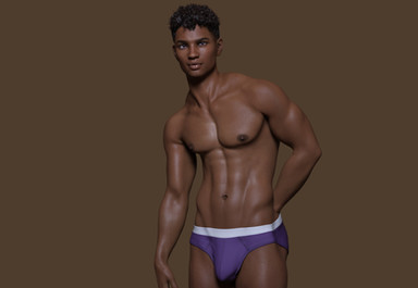 Very handsome. I especially like his hairstyle (if I were the same ethnicity I'd definitely get mine done like that) and the purple/white underwear is a perfect compliment to his colour too