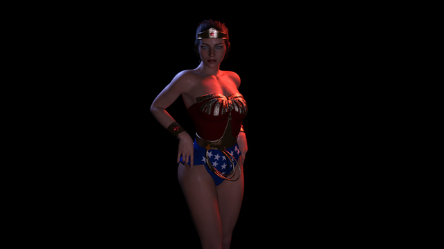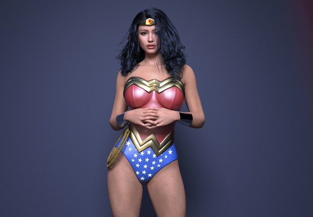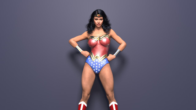 Gorgeous Wonder Woman, Nice work on the outfit and lasso. I like how the hair comes across her face like this. Beautiful work with her muscles showing some mass and the glutes are sexy and perfectly done. The buttocks and thighs look natural,but her right bicep looks too low to her elbow joint almost like it's upside down.