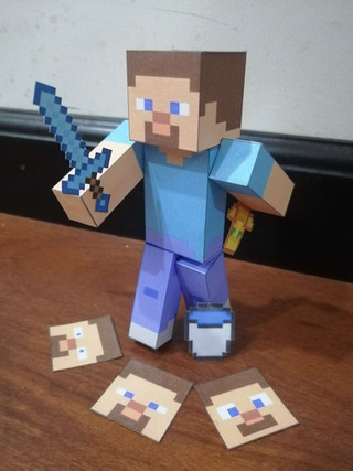 Il soggetto al quale sto lavorando è STEVE! I pezzi di per se sono uniti ad incastro, mentre l'assemblaggio al tronco è stato fatto con degli stuzzicadenti, frenati da vari nodi di spago, simulando una rondella. In questo modo le braccia e la testa possono muoversi a 360°. Per le gambe, anche se le completo, devo trovare un modo per unirle sotto e, allo stesso tempo, farle muovere avanti e indietro per simulare la camminata. Se avete qualche idea, o semplicemente vi piace eseguite questi passaggi: