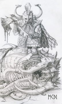 The realistic fantasy thinker I am I decided that the Reaver would not wear much armour in order to be able to be hurt or hurt themselves, as one of the class’s abilities is called “Sacrificial Frenzy” where one takes a bit of their health in order to gain even more power than when being hit by an enemy. So I added a small knife to be carried in the belt of the Reaver. I also made the armour aggressive as one of the old abilities is called “Frightening Appearance” where merely looking at the Reaver would render one helpless. Another interesting ability is “Aura of Pain” where small amounts of health are taken to cause greater damage to enemies within a 6 metre radius of the Reaver. It says in it’s description in the game that true Reavers have drank the ritually prepared blood of a dragon, so I added some draconic (that word passed spell check by the way) influences into the armour (said blood increases one’s strength but may cause insanity).