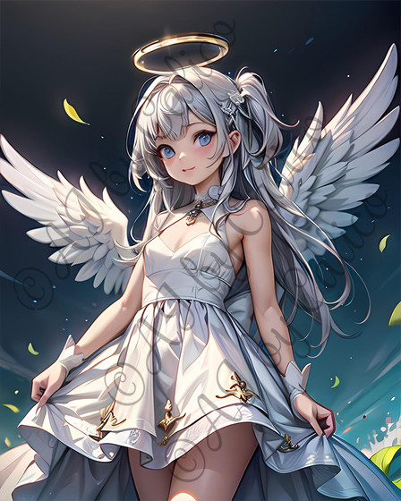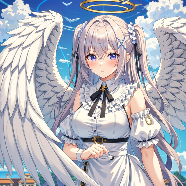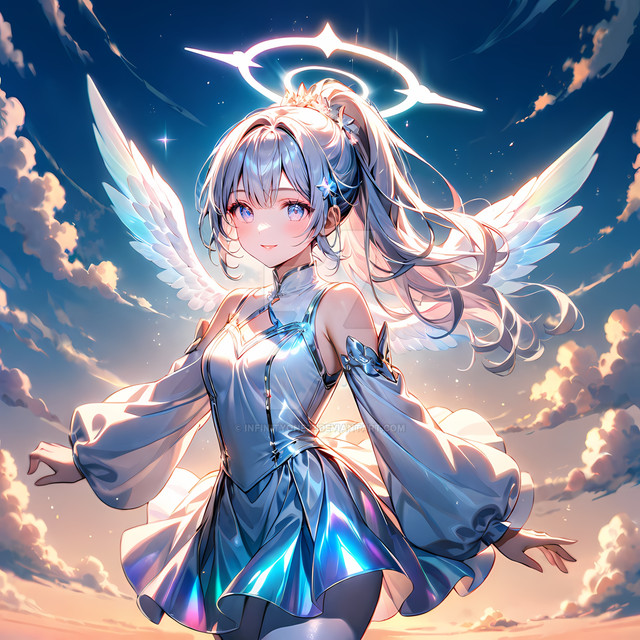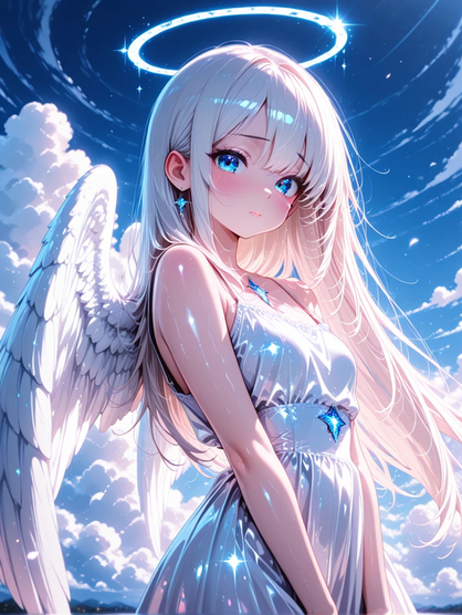 #sea #sky #angel #angelhalo #angelwings #blueeyes #girl #sittingpose #whitedress #whitehair