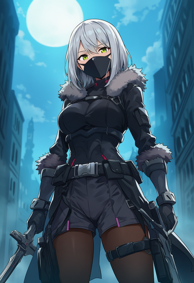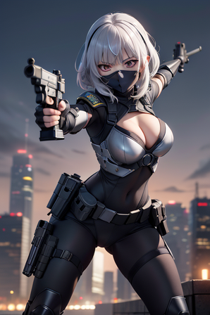 #anime #characterdesign #animegirl #military #originalcharacter #scifi #beautifulgirl #belts #facemask #goldeneyes #gun #longhair #modern #whitehair