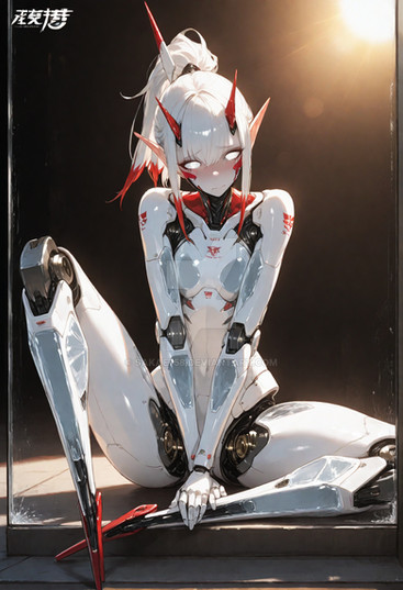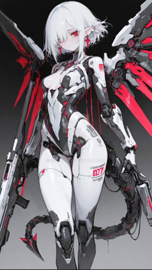 #digitalart #anime #characterdesign #animegirl #scifi #cyberpunk #animedrawing #androidgirl #brest #girl #horns #longhair #mechanical #redeyes #tail #texture #whitehair #mechanicgirl #animaltail