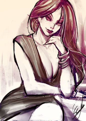 #beautiful #hot #illustration #bigbreasts #cafe #digitalart #digitaldrawing #digitalillustration #reddress #redhairedgirl #sexy #women #datenight #bigbeautifulwoman #art