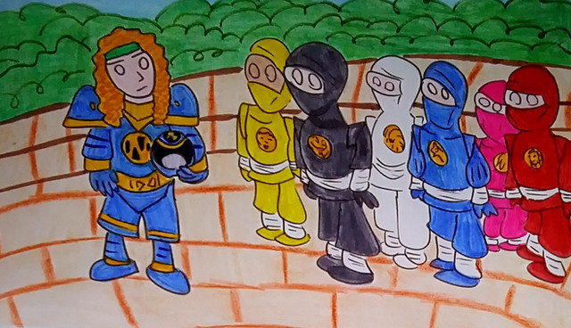 Curiously, a few of these old Rangers have met before. Tori met Kira in Thunderstorm, Kira met Bridge twice, but had her memory erased both times. Bridge had his memory of her erased one of those two times. Kira would still have memory of the SPD Rangers though from that Before it Began Hidden Episode thing. Xander is the only one who's never met another Ranger. Adam has met many Rangers, but none here.