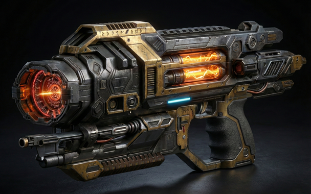 #3d #beam #blaster #concept #digital #display #energy #fi #futuristic #glowing #gun #high #laboratory #laser #orange #plasma #prototype #render #rifle #sci #space #tech #weapon #white #art