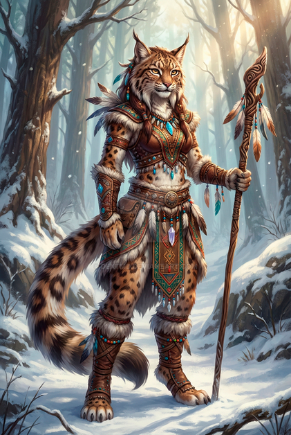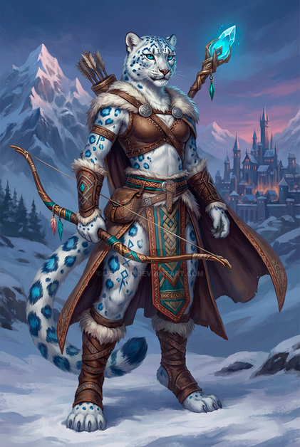 #characterdesign #adoptable #warrior #magic #feline #forest #furry #anthro #anthropomorphic #armor #character #concept #design #digital #dnd #druid #enchanted #fantasy #glowing #leather #leopard #ranger #rpg #snow #staff #weapons #art