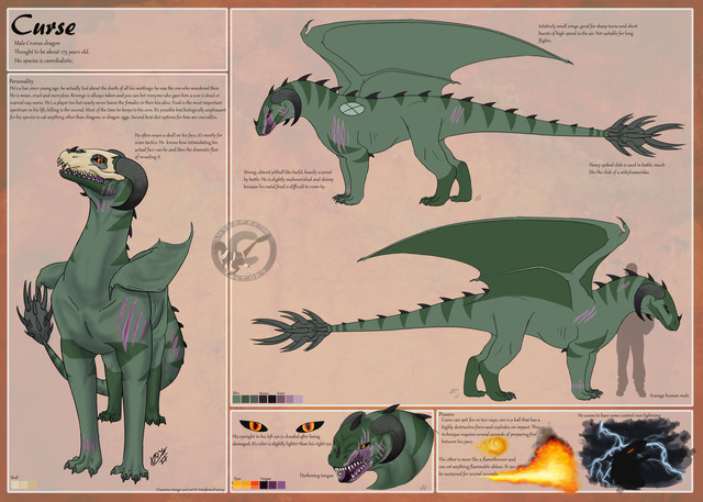 I slapped together some drawings of this boyo for an art trade, then I decided I might as well make a proper ref out of it cause I kinda fucking love him. Probably my favourite face that I ever gave a dragon (((I wanna boop that big squishy nose)))MAN THO it's been a while since I made a reference in this flat/boxy style, I feel rusty as heck when it comes to placing images and text together in an eye-pleasing manner. I might edit or expand on some stuff later, also might change his wing pattern cause I half assed that pretty hard rofl.