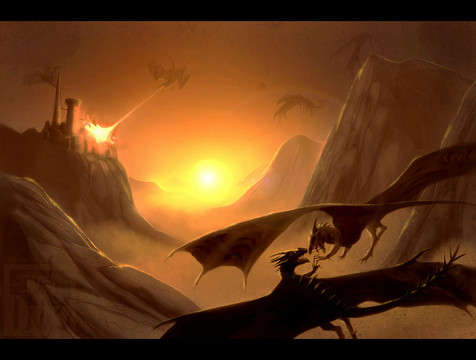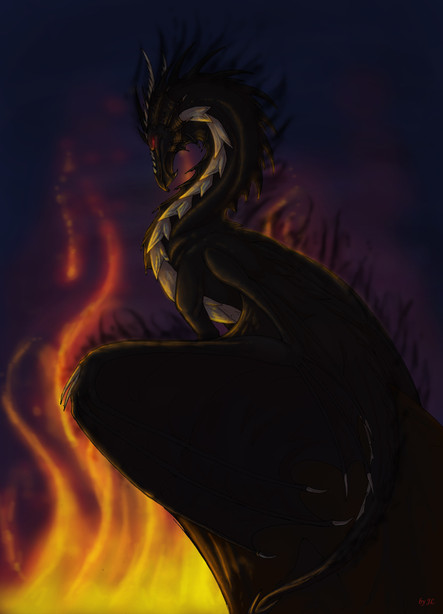 Really beautiful colors and an awesome, dramatic scene! I love the spines on its back, how they glow from the inside and have that smoky glow coming off of them. It really looks awesome!