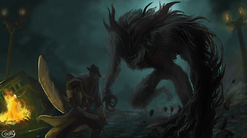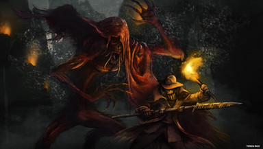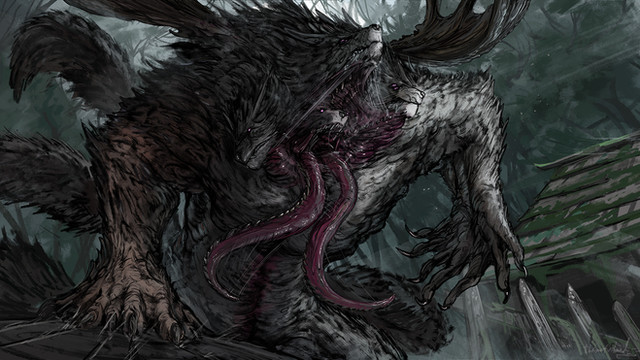 #battle #beast #digital #fight #hunter #monster #painting #sorta #bloodborne