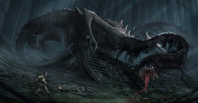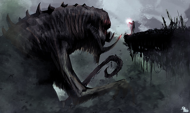 It looks so cool! The shading and the way it almost looks real! I feel like it will just pop out at me. I love the good use of dark colors but yet it's not emo(lol) i like that it's dark with the monster. Mmmmmmmm, so beutiful