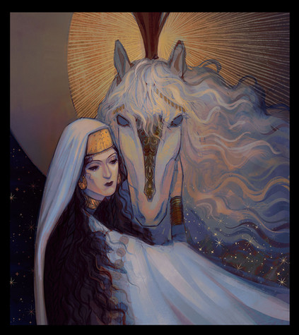 #crescentmoon #field #flowerfield #horse #illustration #june #midsummer #moon #night #pagan #personified #summer #summernight #summersolstice #texturebrushes #textures #pagantraditions