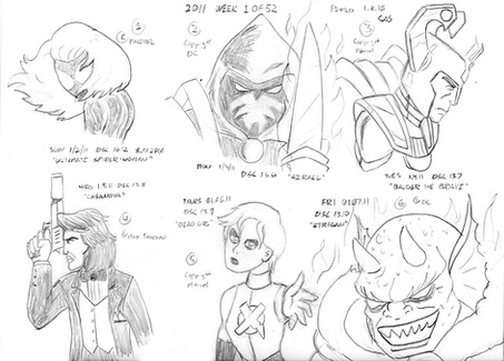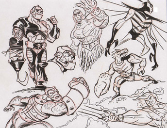 An assortment of randomness here...Megatron, Clownface (Body Bags), star crossed greeters Spock & Abe Sapien, the creepy faced dude from RASL, Savage Dragon back on the force, THROG (aka frog Thor...too much fun), and roided out Ultimate Warrior!
