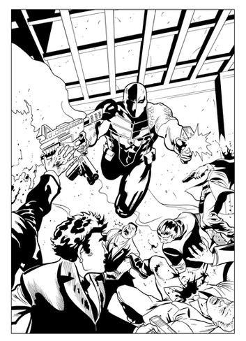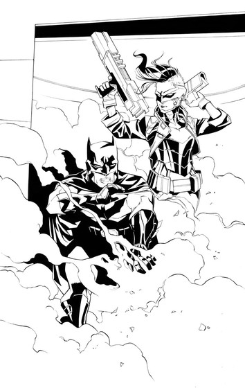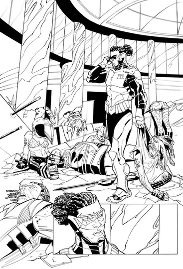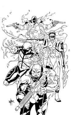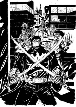 This is a cover for a book called Venger that'll be coming out from publisher Ronin Studios. It's the first time I've inked over the artist before. It's always a weird situation...in that I LOVE and am gravitated towards animation/cartoony style art (both in the way I like to draw as well as what I like to buy), and yet I sometimes feel I'm not really suited for inking that style of work. It can be a tricky situation when inking animation style work in that it really does feel like "tracing" if you're not careful...more like inking a flatlined coloring book than being able to add one's own style to it. So I don't know if I've succeeded or not in this collaboration, but it was fun to give it a go.Pencils: Dario Carasco Jr.