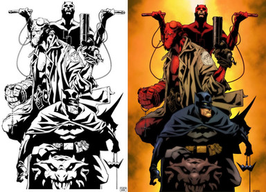 Great work, I doΒ΄nt know any of the caracters, but I like the contrast tha you give to the art work... night and day I supose.