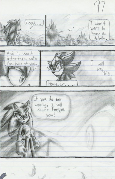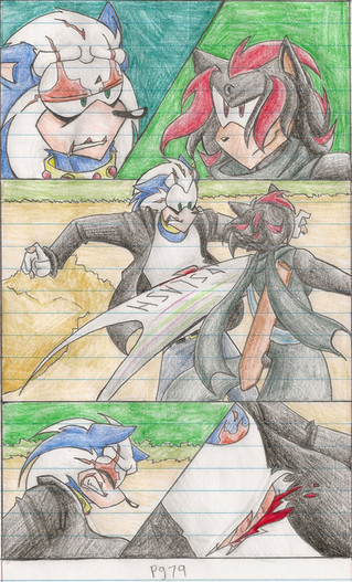I was testing myself with purposeful negative effects when I drew this, so in photoshop when I hit the negative button, BOOM! Panel 2 looks like a really cool eye.(Page Win: For the third time in a row: S-O-N-I-C GO!