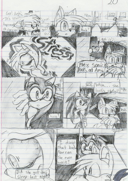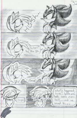 Mmm...I really do like this page... Dem panels...Shadow's starting to feel the pressure now. Emotional instability is so enjoyable to draw and inflict on others. Actually, now we see that I'm branching out into a different panelling style. It'll get more pronounced as we go on.