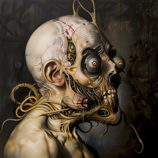 The exaltation(?) on his face intrigues me the most...the thought of enjoying one's flesh flying off one's own face is wonderfully horrific.