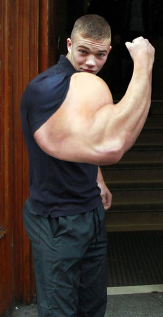 I'd love to see him squeeze cannonballs between that peak and the forearm