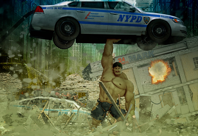 Love this image and this idea! I like how it looks like he's just back-handing that car - and sending ir flying! Awesome!