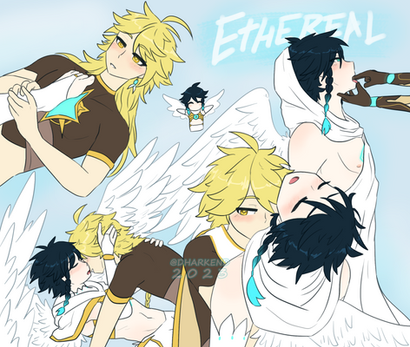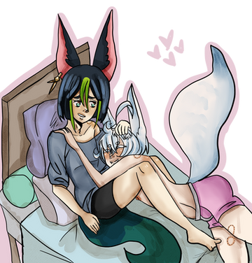 good old angel and devil concept, who hasn't done this one at this point? as far as characters, might do more works with this fox dude, he has some lore and stuff so maybe i'll post more of him here?trying to get better at drawing hair texture instead of having it be flat with vague shapes grr