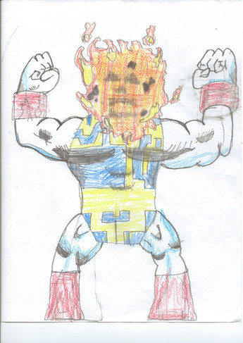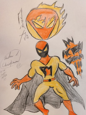 I'm filing this under fan art. There's a lot of Moon Knight\Daredevil influence in alot of the design (though last I checked, niether chucked fireballs at someone). Fun fact: The character's actually a female. She wears a lightweight padded\armored outfit to further hide her ID.Unfortunately, the original got crumpled a bit before I could get a pic of it. My submission are pics taken from my phone's camera (a couple of my pics I submitted though my camera). No scanner, I'm afraid.