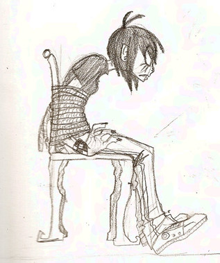 It's me a few years ago. Except I was wrapped in chains, and locked in the dark alone. . . and my eyes were wide open. . . only my mouth was sewn. It really sucks when you can't talk, or move but can fully see the world around you, and can do nothing but watch as it falls in around you. . .Yess. . . . . great drawing. I love how much angst there is in everyhitng you draw. . . well at least what I've seen. . .