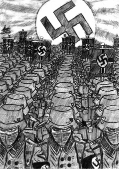 this is really great on so many levels, if i may add though that the rifles in the front seem a little off, but otherwise a wonderful piece. love your work!
