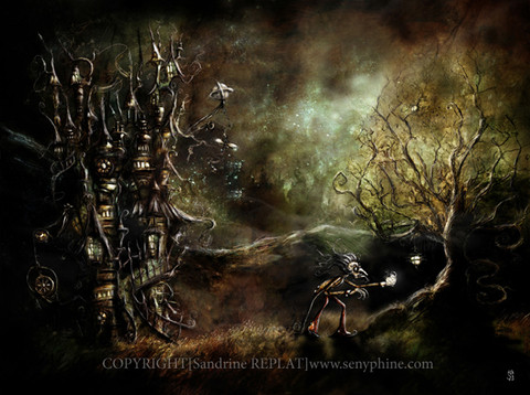 The background is a great compliment to the original drawing (which is very cool, props to *terriblekim ) It's so colourful and detailed. Storybook material indeed!