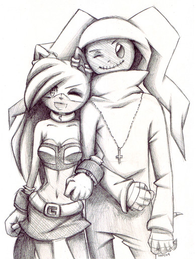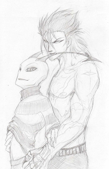 Anyway... This is actually supposed to be a remake of an old doodle... that was done in the old crappy mostly iz/anime style.. XD I still find I really liked it because it looks so sweet and like the two of them are really holding each other.