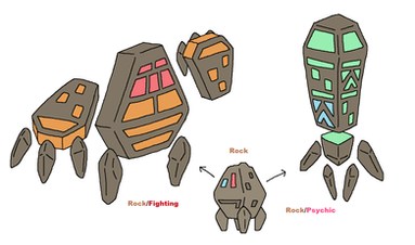 Dex Entry: Believed to be of artificial origin, these Pokémon were once used by an ancient civilization to determine the cardinal points. Their core is made up of unknown material that is capable of pulling matter towards it.