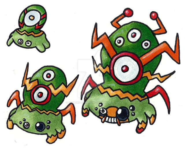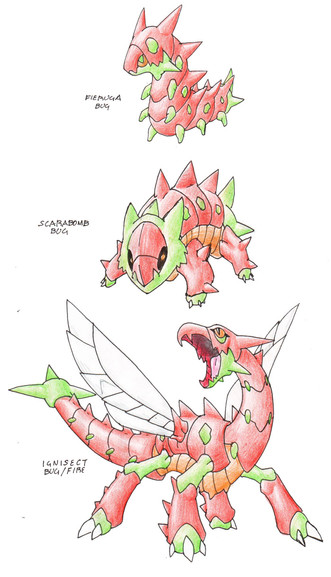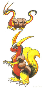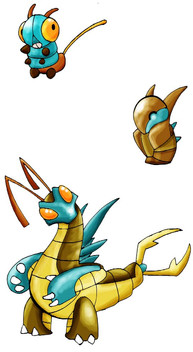 Dex Entry: Being Pokémon that lived in ancient times, it is believed that it was one of the first bug-type Pokémon. To defend themselves against natural foes they disguise their bodies as dragon-type Pokémon and use their deattachable tails as a diversionary tactic.