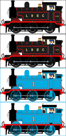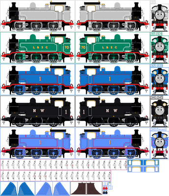 After a few months' hiatus... I have returned.Here's a sprite pack of Thomas the Tank Engine, as he appeared in the Railway Series books. For the first time ever, a face pack is included, consisting of changeable faces.