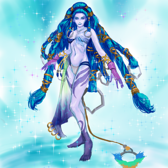 this picture is really good , i only thing i didnt like so much is her face it needs some work to it , i dont really see shiva as the smiling type she is more of a cold calm type so maybe u should try to give her a more calm face expression but overall i really like this picture its really good