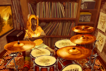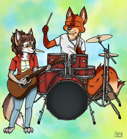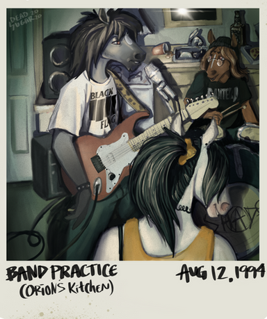 Another drawing that looks like a PolaroidThis time we have Faith on drums and my friend’s characters on the bass and guitar. (They loved it btw)