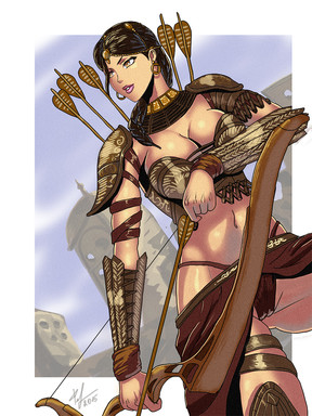 Maria from Final Fantasy II (1988). She's got some amazing boobplate armour and curly hair that has all the spirit of the 80s (I actually based the pose on a piece from 80s visionary Patrick Nagel for this one, and I think it worked out!).
