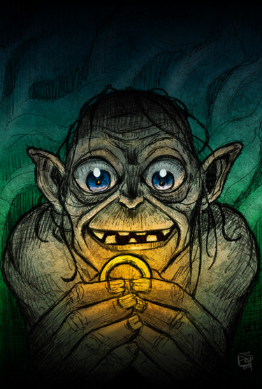 This is one of my newer pieces, obviously mixing the Lord of the Rings with the Ring. Little Gollum has clearly found a new precious...Samara.Drawn with pencil and ink...then scanned and colored in Photoshop using a tablet.