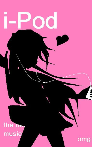 Caitlin+nothing to do=This Picture. I got WICKED bored and drew this on oekaki. I love those commercails, they're wicked random. I mean serously, who dances aroung in a brightly colored room with an ipod wearing all black? No one I know does...Related content