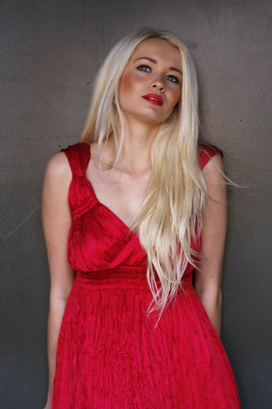 #arm #arms #blonde #chest #dress #face #fingers #girl #hair #hand #hands #head #lady #lips #mouth #neck #nose #red #smile #teeth #woman