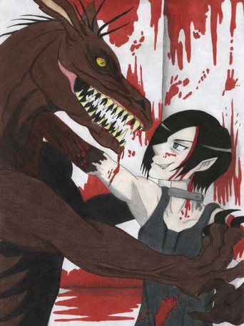 me alegra que te haya gustado ;-; quería que se notara más la franja roja pero luego de tomar el lineart me di cuenta que la pose hacía imposible eso ._. y el espacio que hay con las ramas no me permitía hacer el cadaver ;-;
