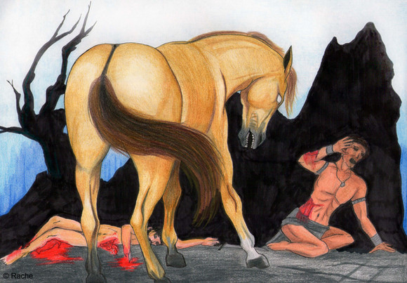 me encantaron los detalles de rojo en el caballo y en el agua... como si se estuviera destiñendo O.O