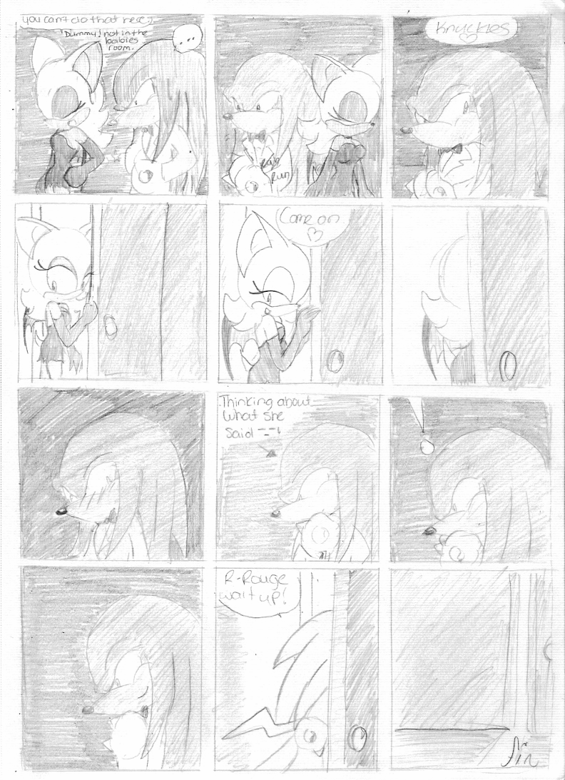 As for this comic here: Rouge SNUCK UP on him, for crying out loud! She's a bat! A SPY, no less! The best of the best at stealth! Don't you cheapen Rouge's specialties like you do Knux's... do not. Stop debasing them and their glorious relationship.