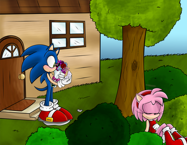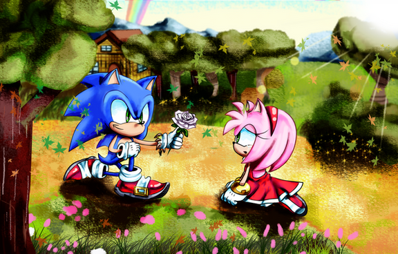awww s cute!! ** me encanta por que le regala sonic esa hermosa rosa blanca *_*