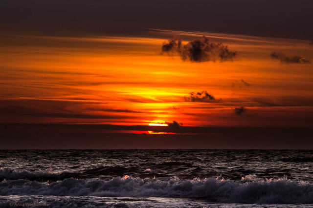 A sunset over the North Sea, watched from the beach of Westerland on the isle Sylt.Out of better times, I wish I could visite the sea again!
