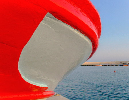 The reflections of a red and white coloured fishing boat in the harbour of Niendorf at the Baltic SeaThe same location: