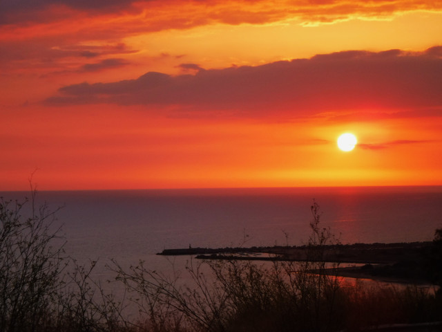 It is a wonderful sunrise with fog from the warm sunbeams over the cold water of the Mediterranian Sea. About one hour later the fog was away and we have had a beautyful sunny day!